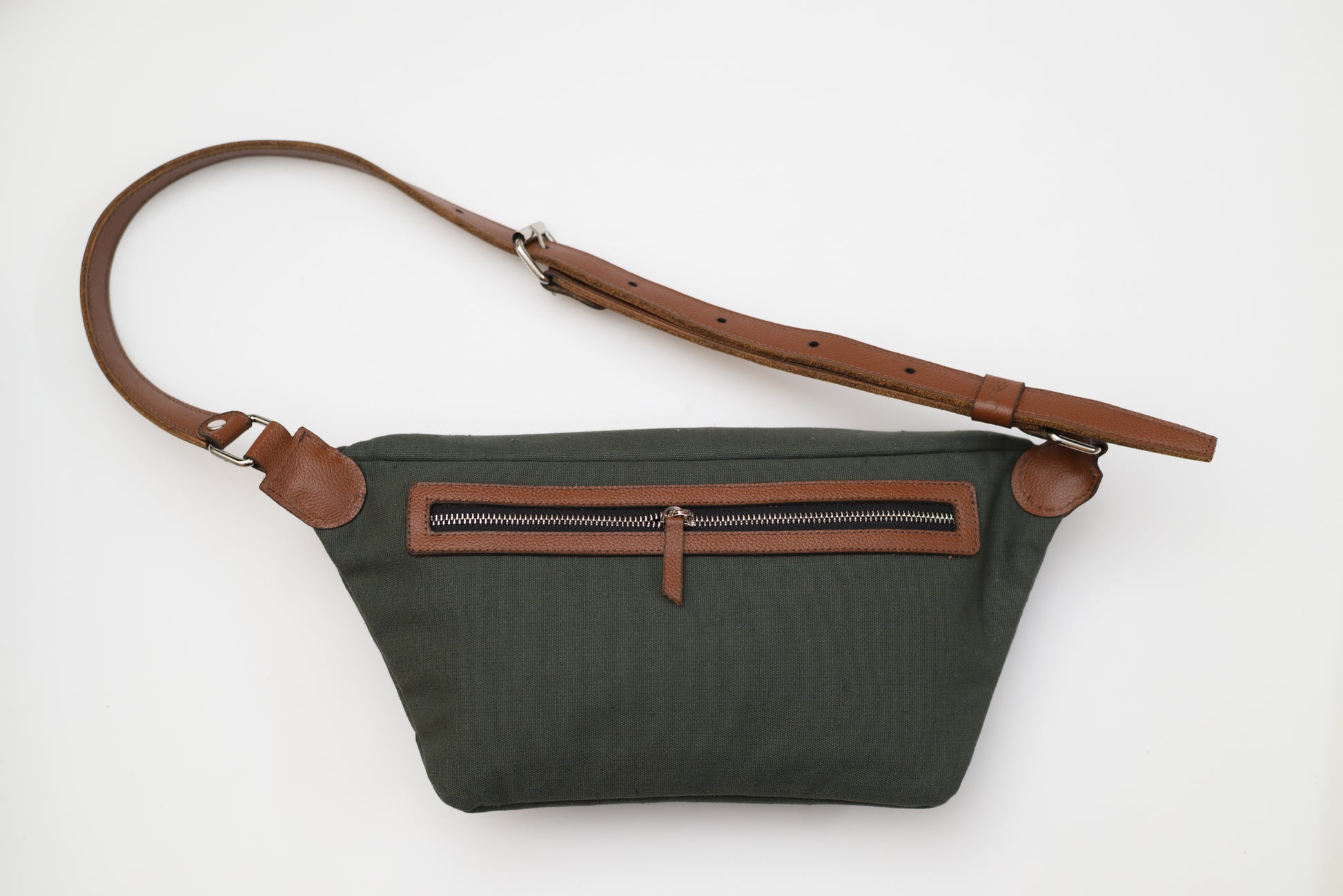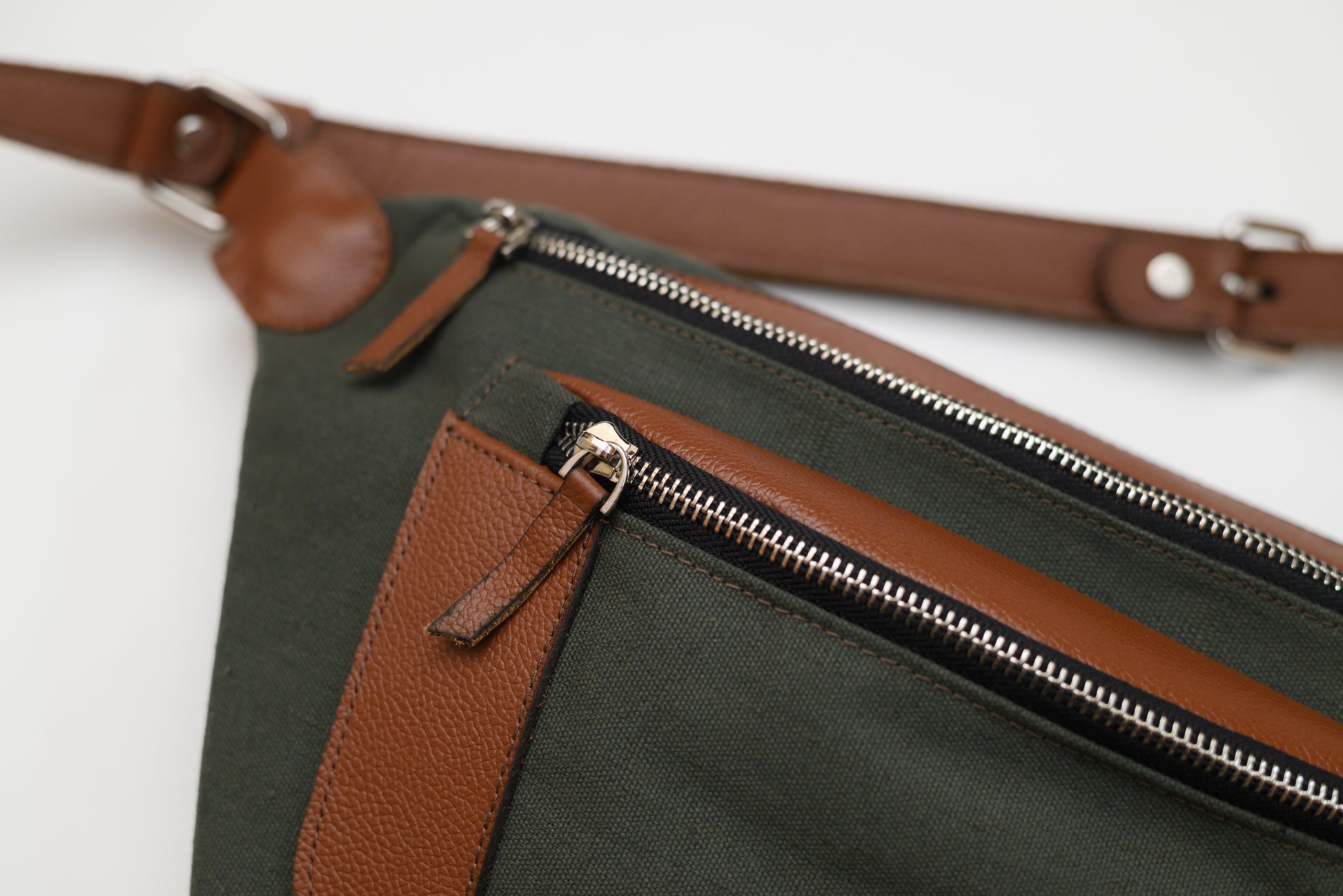 شنطة رجالية مصنوعة من القماش مع لمسات من الجلد الطبيعي، ومبطنة بطبقات قماشية داخلية لتعزيز المتانة. تتضمن جيبًا صغيرًا في الأمام، وجيبًا رئيسيًا، وجيبًا داخليًا مخفيًا، بالإضافة إلى جيب خلفي سري. تأتي مزودة بحزام من الجلد الطبيعي يمكن ارتداؤه حول الخصر أو الكتف لسهولة الحمل.ف